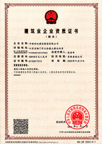 11月21日,國家住房和城鄉(xiāng)建設(shè)部發(fā)布了《住房城鄉(xiāng)建設(shè)部關(guān)于核準(zhǔn)2017年度第十三批建設(shè)工程企業(yè)資質(zhì)資格名單的公告》,中聯(lián)世紀(jì)建設(shè)集團有限公司成功獲得了建筑工程施工總承包特級資質(zhì)、