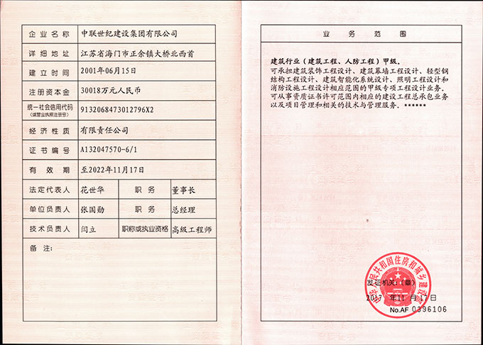 11月21日,國家住房和城鄉(xiāng)建設(shè)部發(fā)布了《住房城鄉(xiāng)建設(shè)部關(guān)于核準(zhǔn)2017年度第十三批建設(shè)工程企業(yè)資質(zhì)資格名單的公告》,中聯(lián)世紀(jì)建設(shè)集團有限公司成功獲得了建筑工程施工總承包特級資質(zhì)、