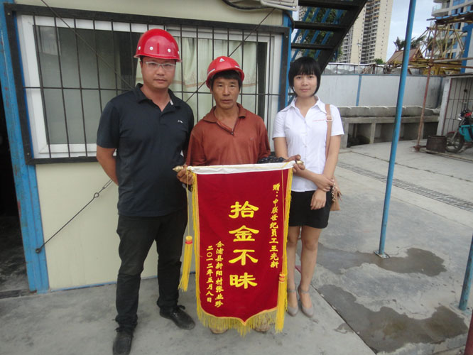 近日,失主張業(yè)珍帶著錦旗來到項目部,向培養(yǎng)出了像王光新這樣優(yōu)秀職工的項目部表達深深地敬意,并向王光新表示衷心的感謝,隨后她強烈要求給王光新一些錢作為回報,被他婉言謝絕了。