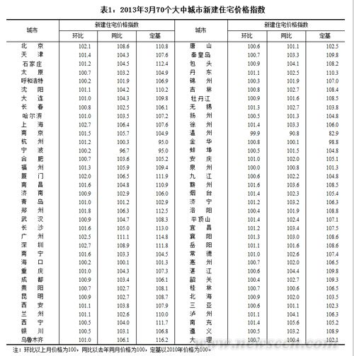 2013年3月份70個(gè)大中城市住宅銷售價(jià)格變動(dòng)情況